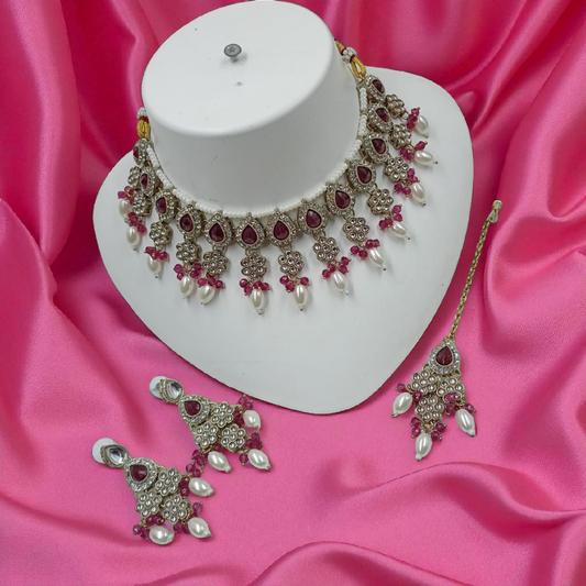 Pearl Drop Choker Jewellery Dangle Earrings Set - Rani